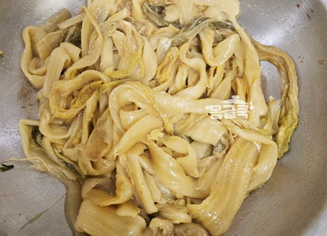강불에서 묵은지의 남은 수분을 먼저 날려줘야 꼬들꼬들한 식감이 살아나요.