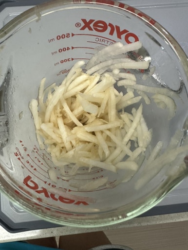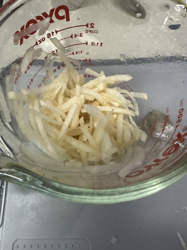 처음에는 수분이 조금 나오다가 시간이 지나면 무가 투명해지기 시작해요.