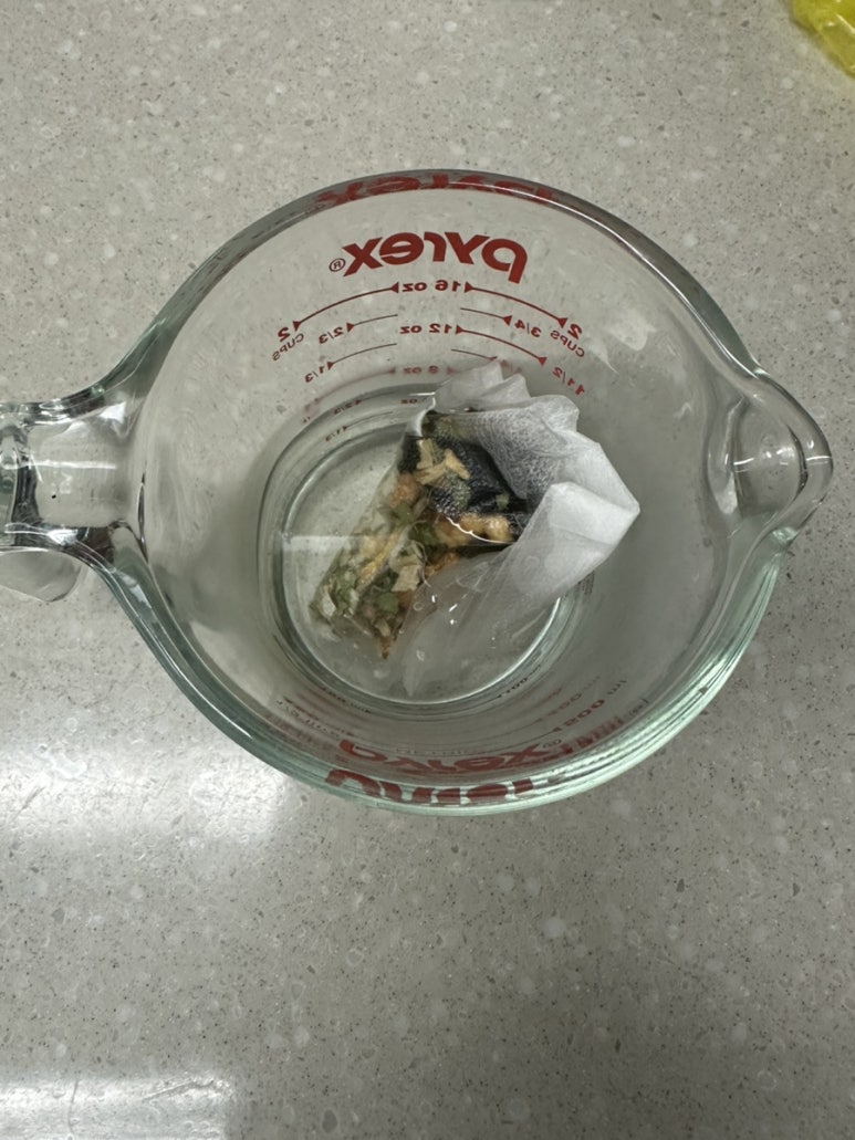 저는 따뜻한 물에 유아용 육수 팩을 넣어서 먼저 준비해두었어요. 무볶음은 은근히 수분을 필요로 해서 육수가 미리 준비되어 있으면 조리가 훨씬 수월해져요. 육수의 깊은 풍미가 무에 스며들면서 별다른 양념 없이도 깊고 부드러운 맛이 나고, 아기도 부담 없이 먹을 수 있는 깔끔한 맛이 완성됩니다.