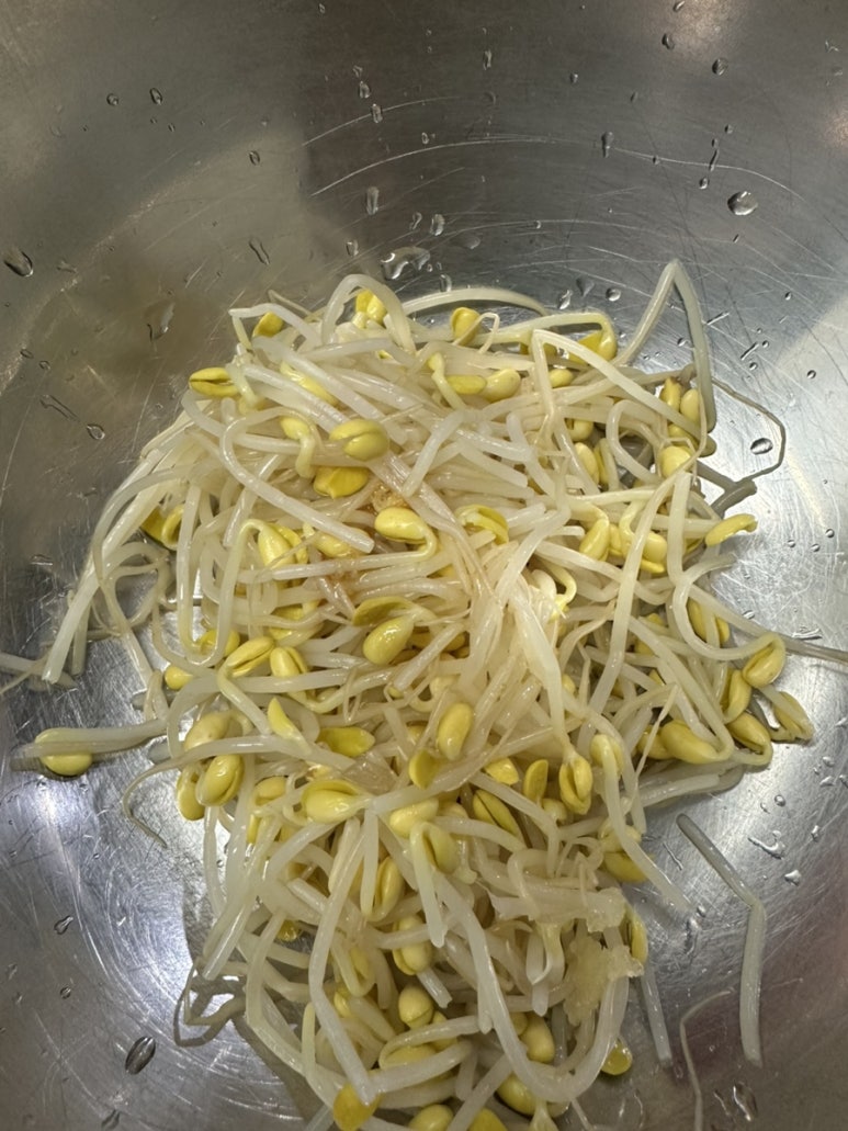 콩나물을 지저분한 부분이 없는지 눈으로 확인하고 흐르는 물에 깨끗하게 세척해 주세요. 잔뿌리나 껍질이 붙어 있다면 제거해 주는 것이 더 깔끔합니다.