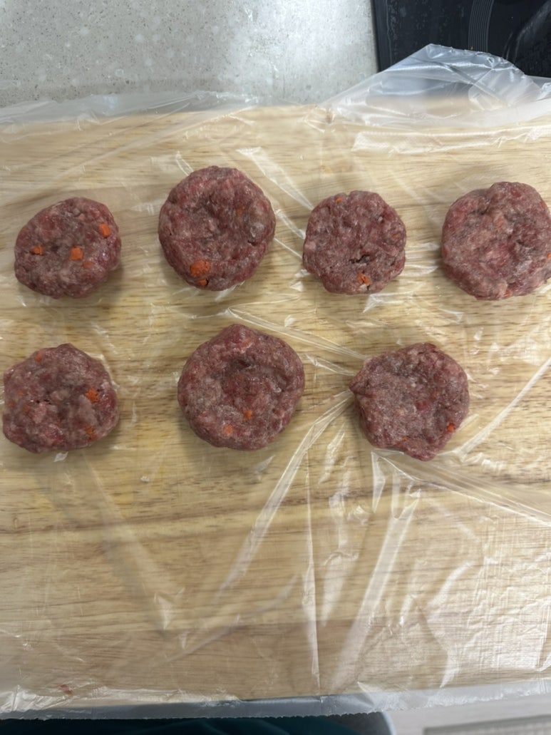1. 반죽한 고기를 동글납작하게 빚어줍니다.