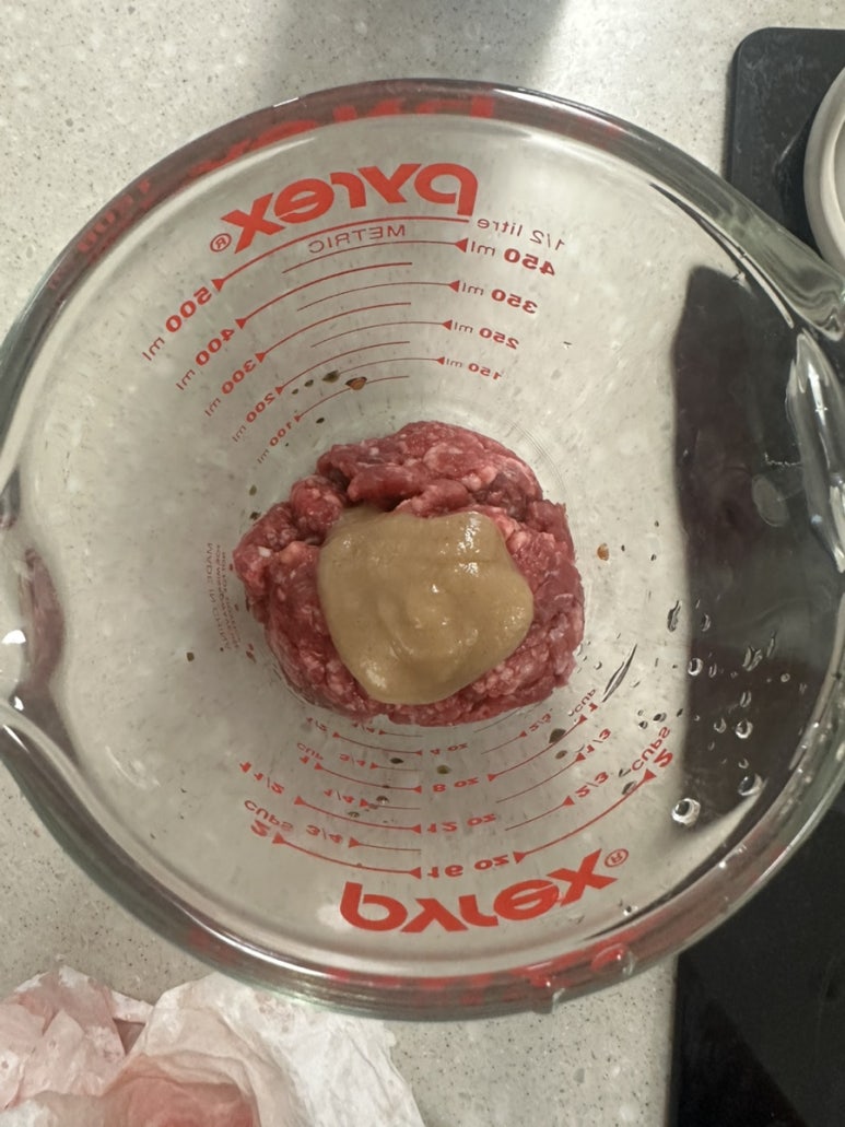 👉 손으로 치대듯 반죽해야 고기가 서로 달라붙어 구울 때 부서지지 않아요.