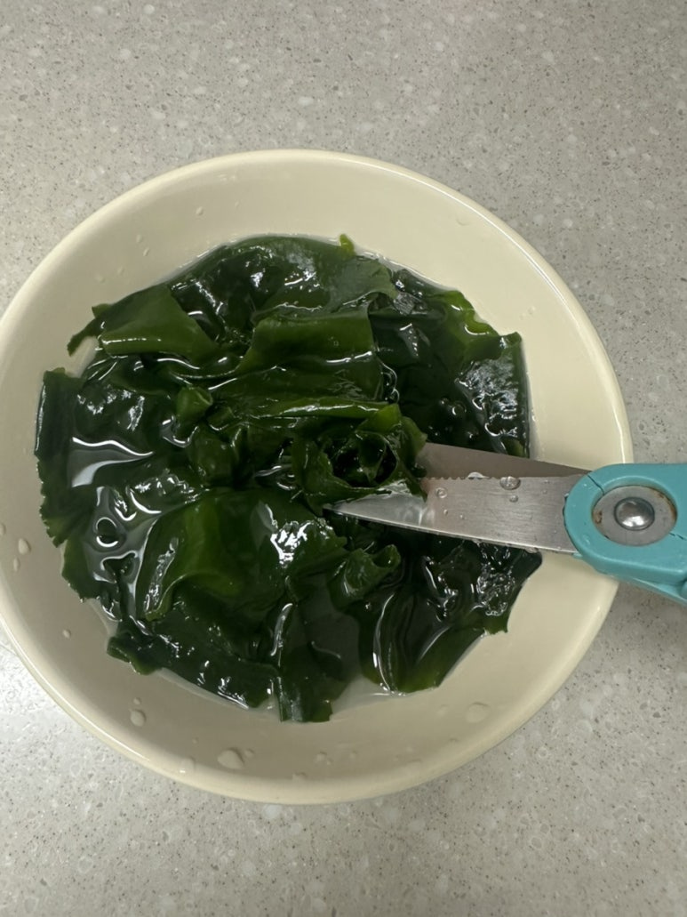 • 미역은 소화가 어려울 수 있으니 꼭 잘게 잘라주세요.