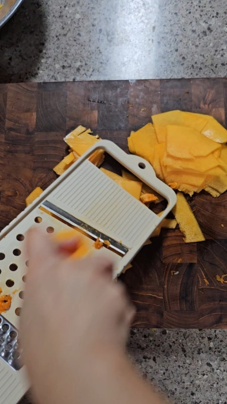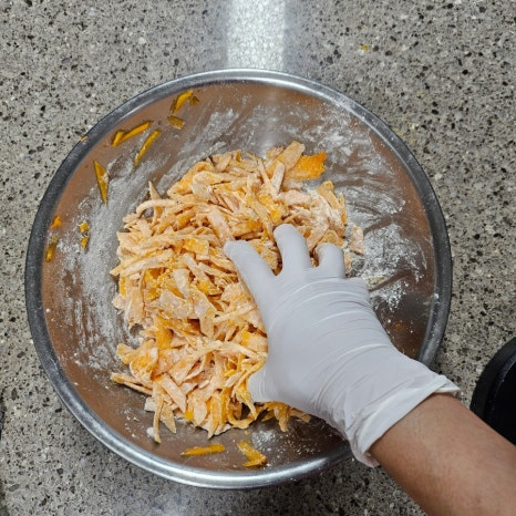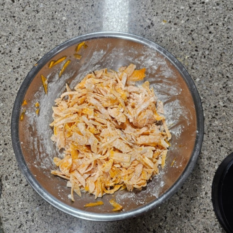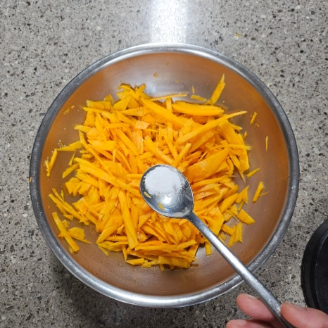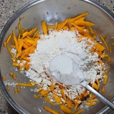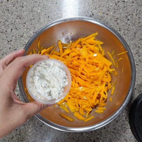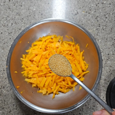 늙은 호박전은 약불에서 오래 부칠수록 달큰한 맛이 살아납니다.