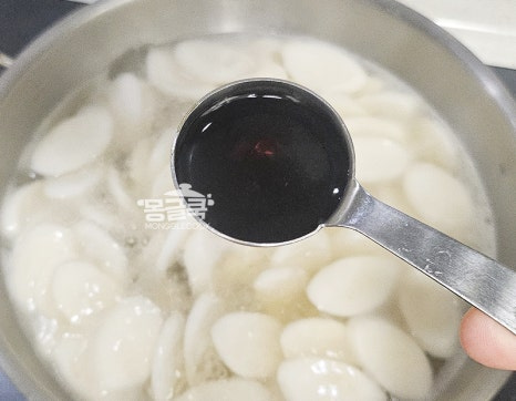 떡이 익기 시작하면 둥둥 떠오르는데, 이때가 바로 계란물을 넣기 전에 간을 맞추는 타이밍이에요