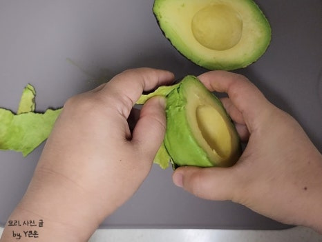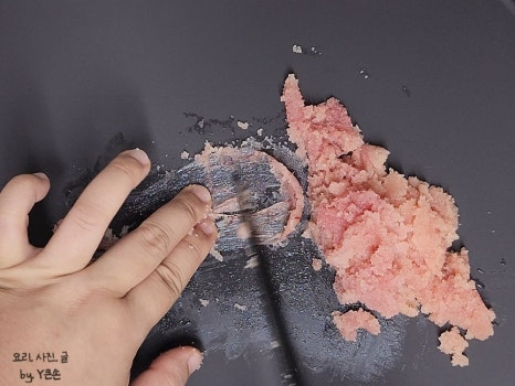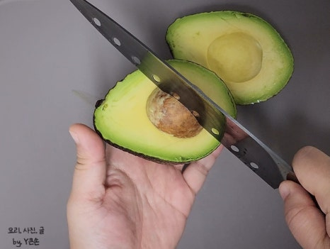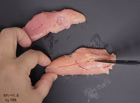 손 조심해 주시고요. 한 번에 과감하게 콕 찍어 주서야 잘 된답니다.
