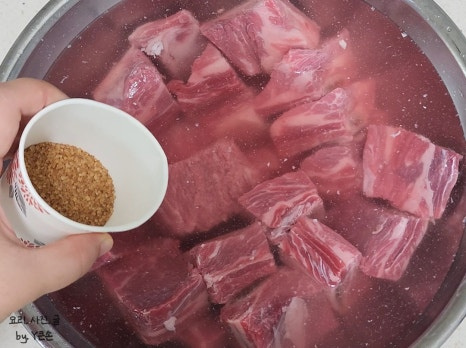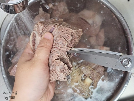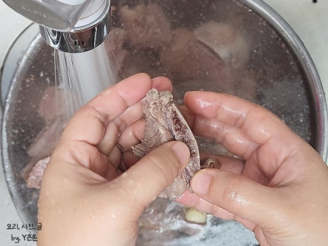 핏물을 충분히 빼주어야 국물이 깔끔하고 잡내도 없어요.