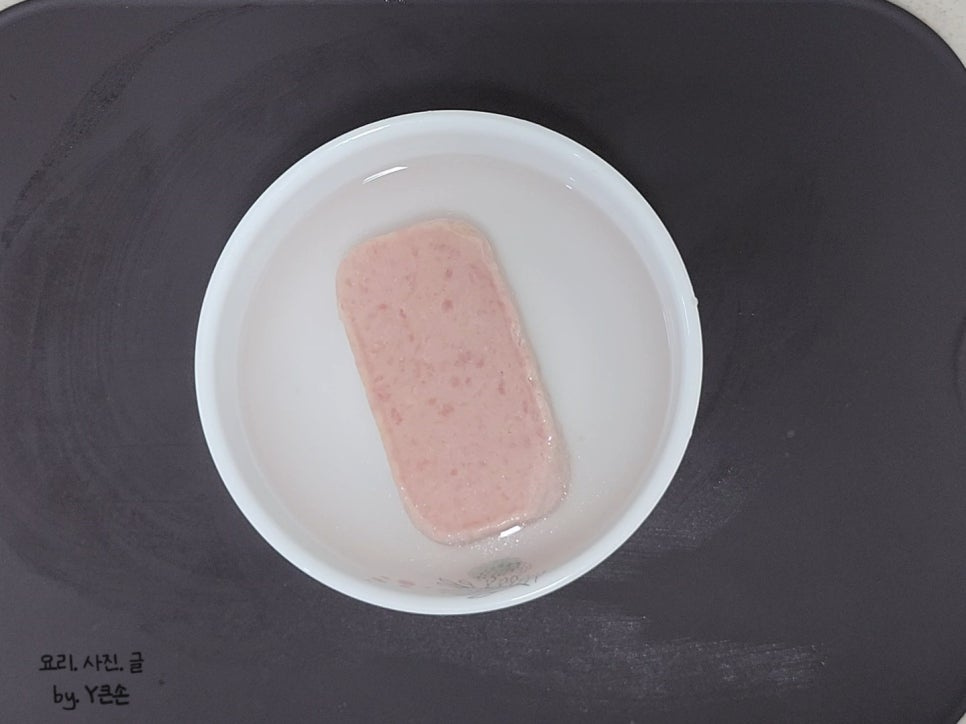 스팸을 바삭하게 볶아주시면 더 좋습니다. 베이컨 느낌을 만들어 준답니다:)