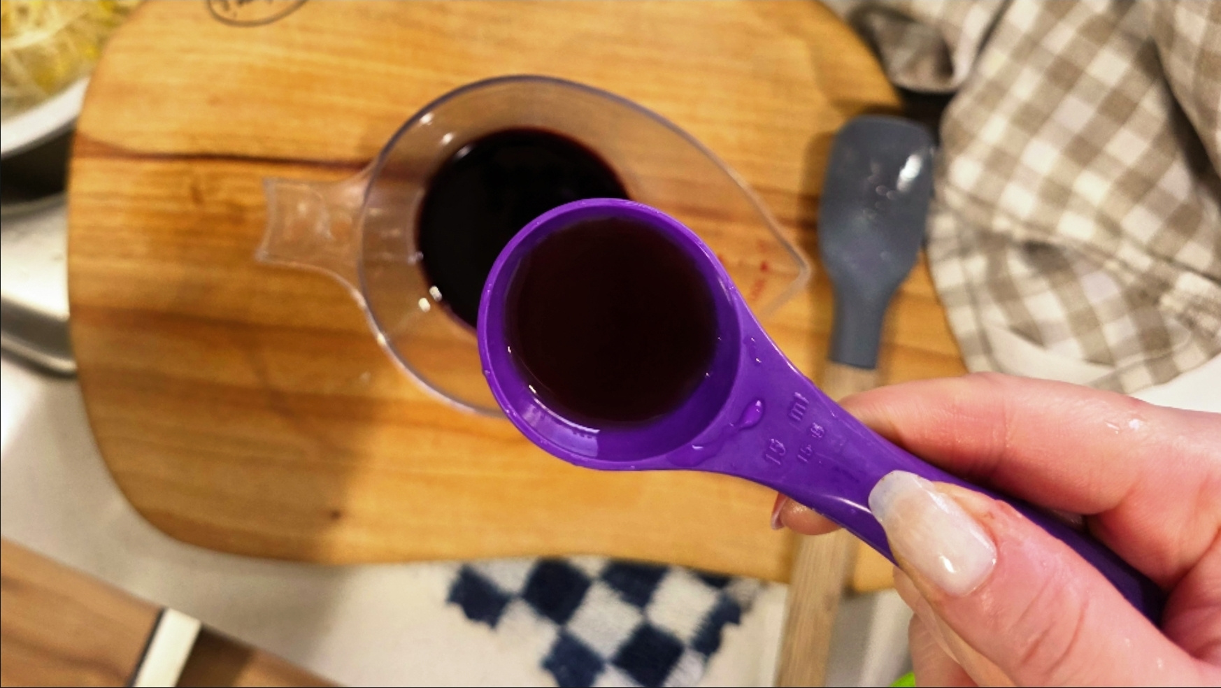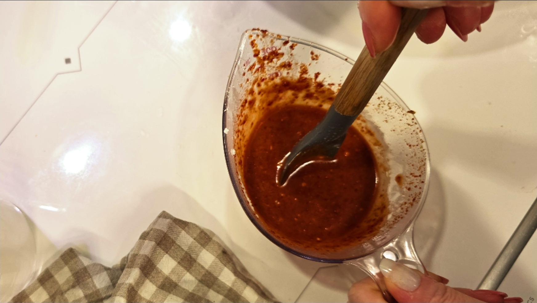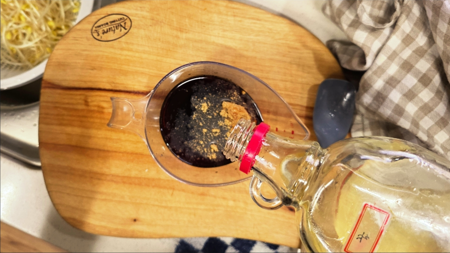 1. 남겨 두었던 양념장에 전분가루 1TS을 넣고 잘 저어 풀어 주세요