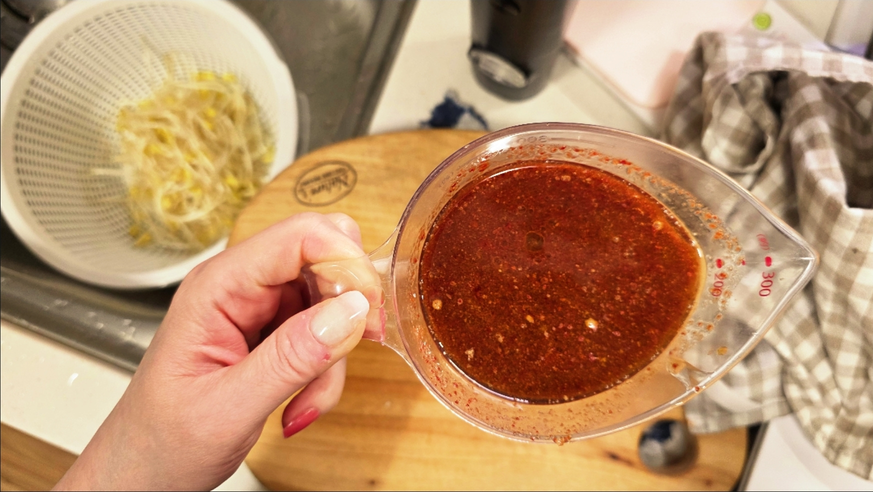 남은 양념장에 전분가루를 넣고 살살 섞어 볶아 뚝딱뚝딱 콩나물두루치기를 만들어 보았어요.