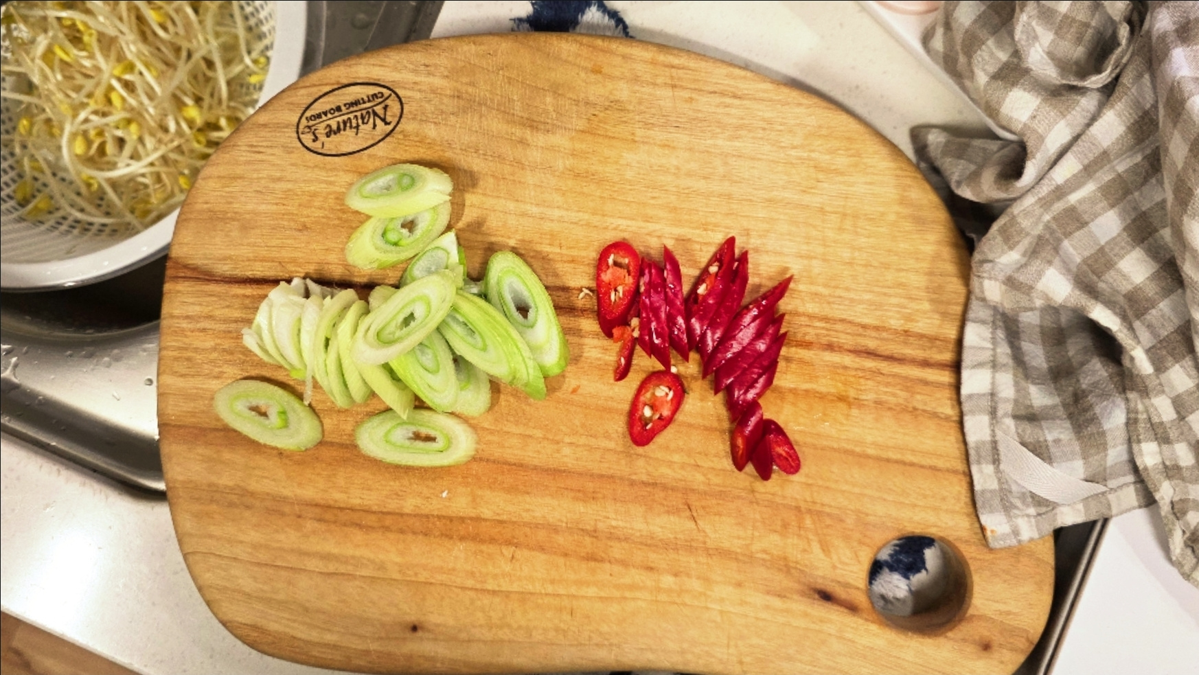 2. 대파반개는 어슷썰고, 홍고추1개는 송송 썰어 놓습니다