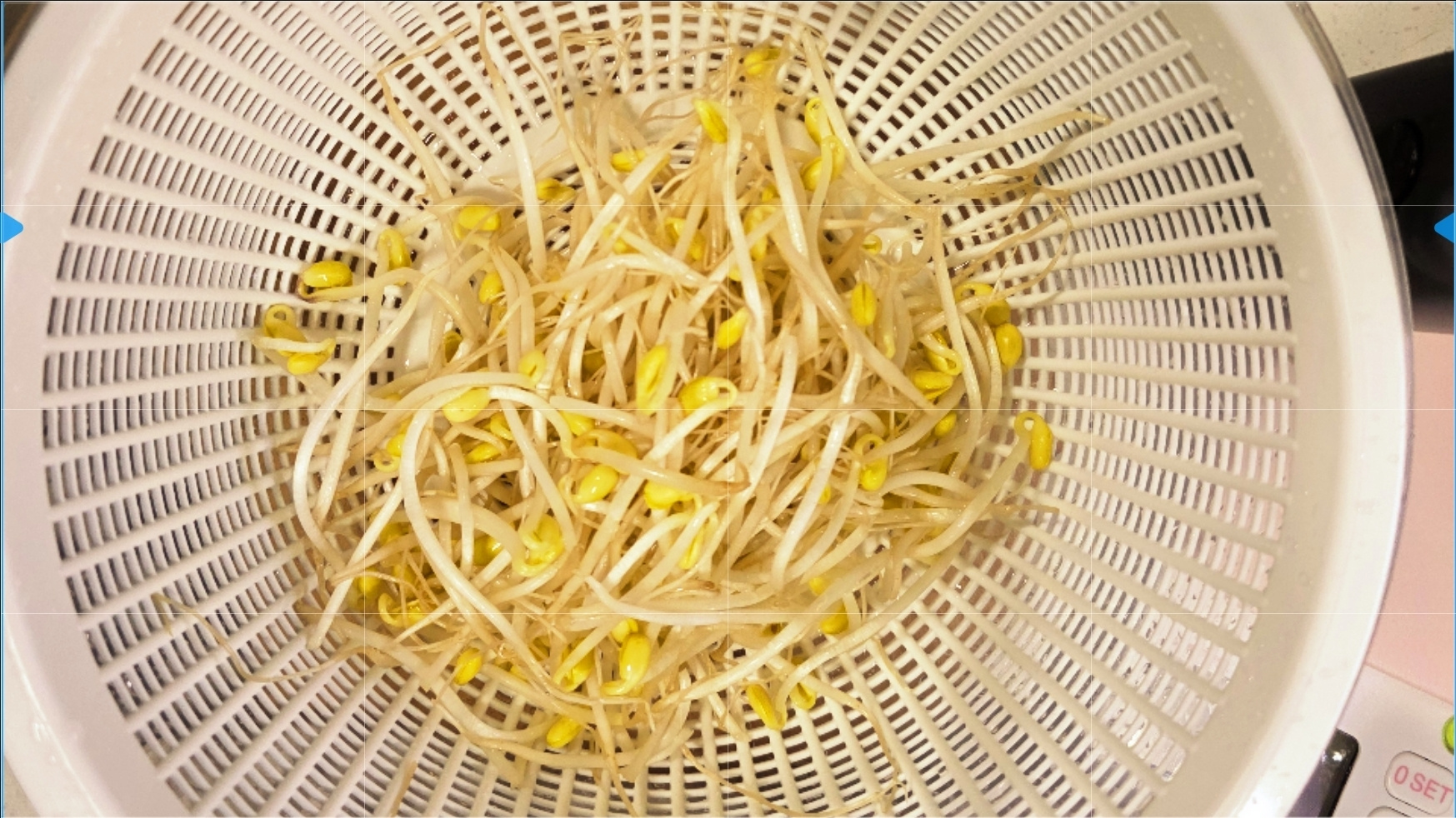2.뚜껑을 열고 두부는 팬의 겉으로 콩나물과 버섯은 안으로 모아 주세요