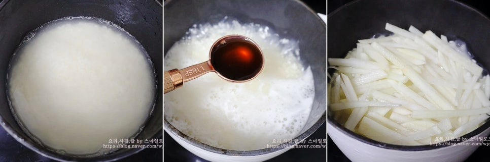 무채에서 수분이 나오기 때문에 평상시보다 물을 약간 적게 잡으면 됩니다