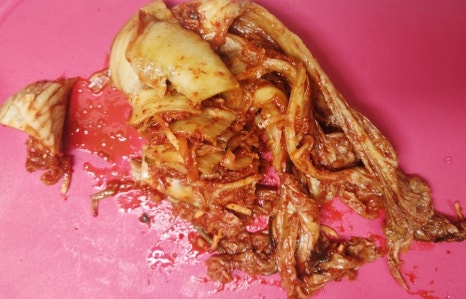신김치 반포기를 잘게 송송 썰어 주세요. 너무 크면 먹기 불편하니 한 입 크기로 썰면 좋아요.
