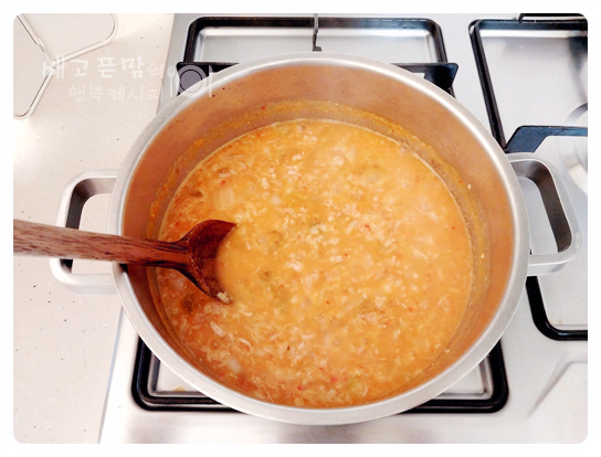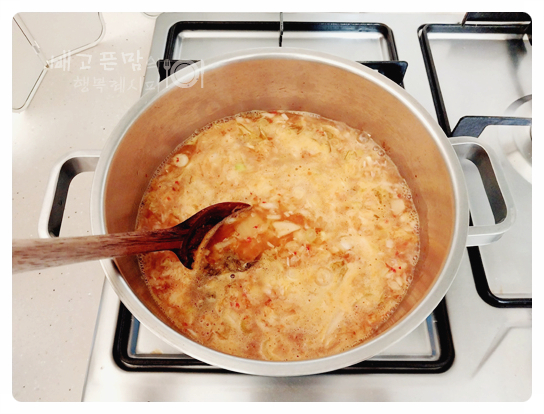 다시 멸치 육수에 묵은 김치 넣고 끓이다 밥 넣고