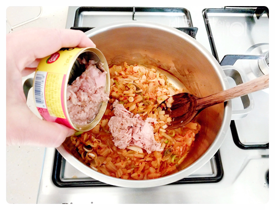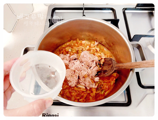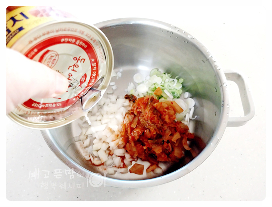 참치 기름을 먼저 넣고 볶아 줍니다.