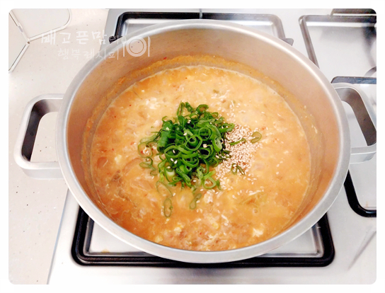그리고 대파 초록 부분을 송송 썰어 넣고