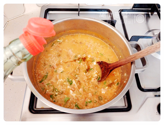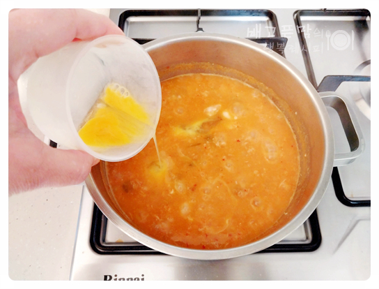계란 1 개를 풀어 넣고 고르게 저어 줍니다.