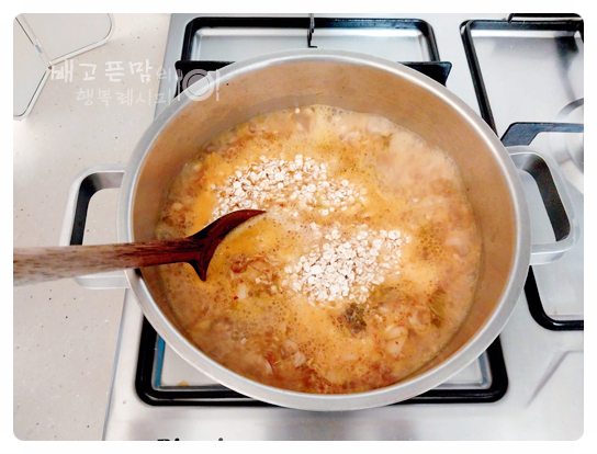 다이어트 음식으로 오트밀과 참치캔을 넣고 끓였는데