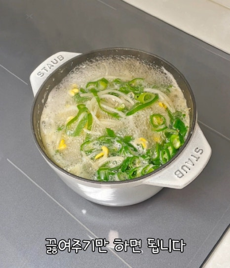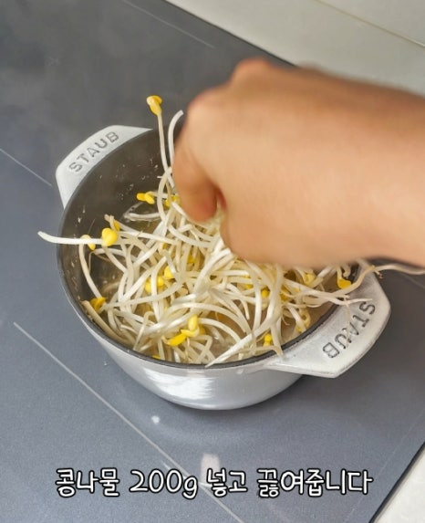 이 때 콩나물을 넣은 후에는 아예 뚜껑을 닫던지 아니면 뚜껑을 열어두던지 둘중에 하나만 해야하는데요!