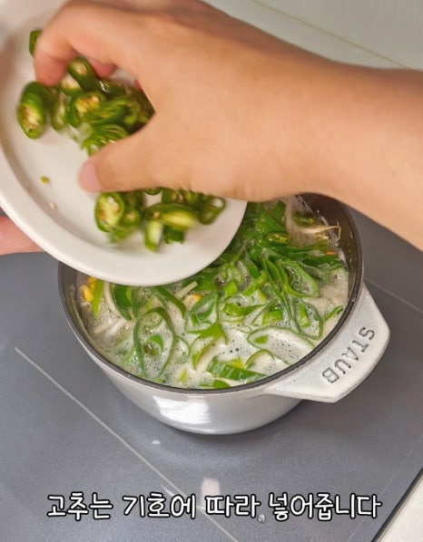 고추는 기호에 따라 넣어주고 마지막 한번 쎈불로 팔팔 끓여 마무리 해 줍니다.