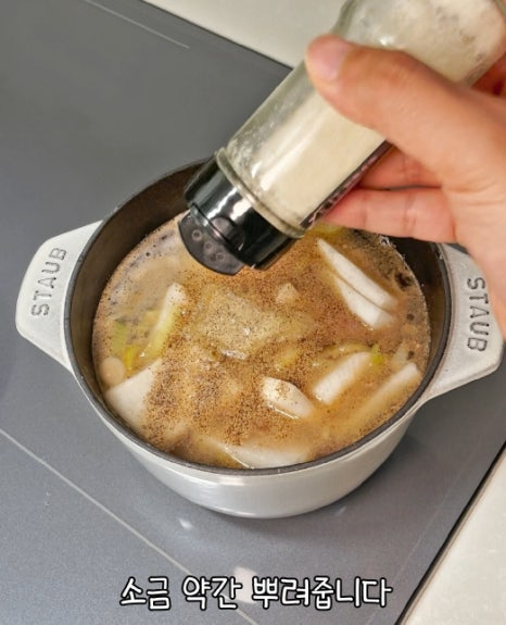 마지막으로 불을 줄이고 한소끔 더 끓여주면서 무가 익었는지 확인을 해야 하는데요, 무가 완전히 익었다면 젓가락으로 찔러봤을 때 푹! 하고 잘 들어갈거에요!