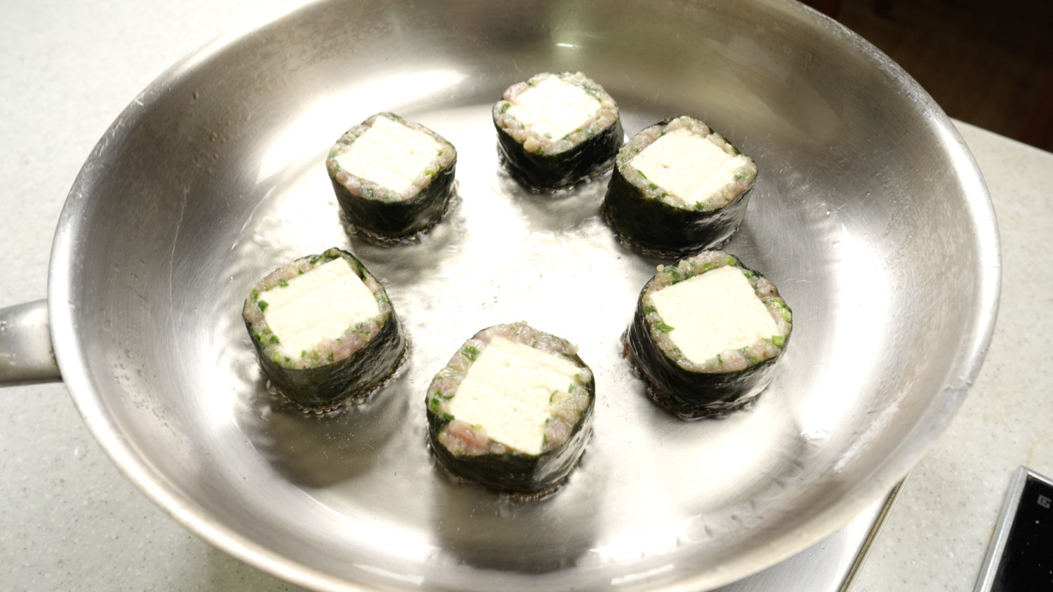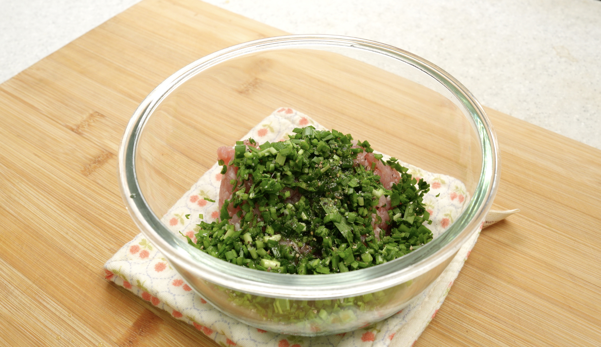 초간장소스 : 진간장 1큰술, 식초 1큰술, 매실액 1/2큰술, 고춧가루 1/2큰술, 부추, 통깨 조금