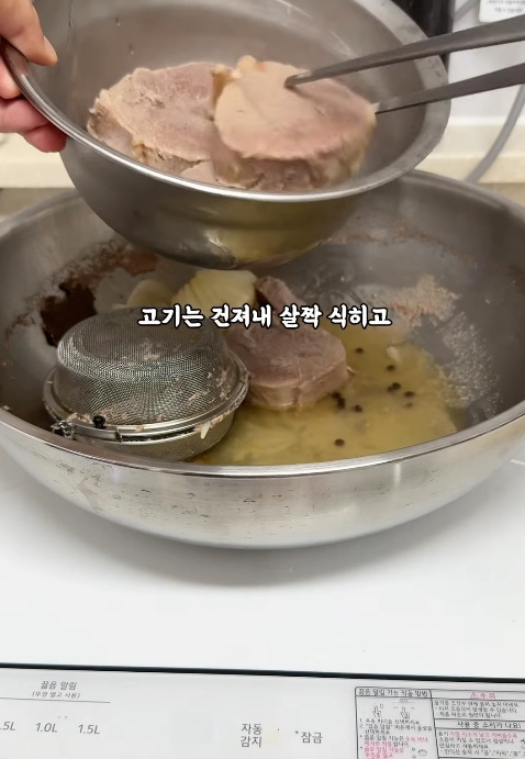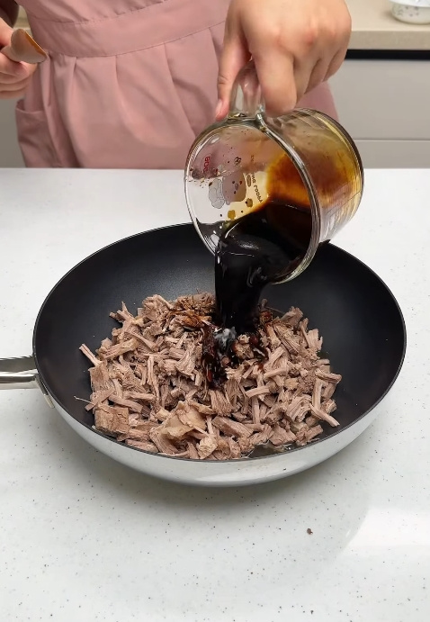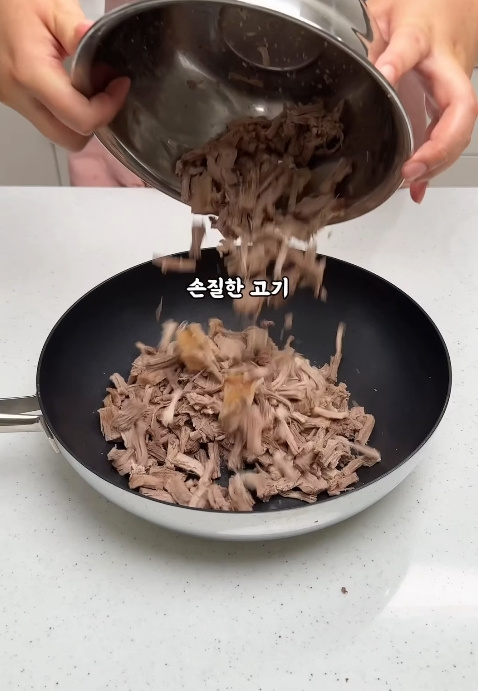 고기는 너무 식으면 잘 안 찢어지니 살짝만 식혀 원하는 크기로 찢어주세요.