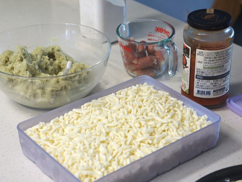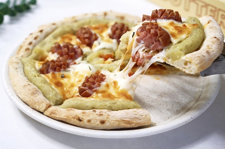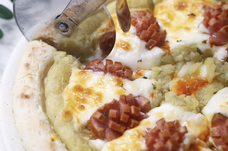 달콤하고 부드러운 맛의 고구마피자 입니다. 고구마피자는 고구마의 자연스러운 단맛과 치즈의 고소함, 그리고 비엔나소세지의 짭쪼름함이 어우러져 한 입만 먹어도 풍미가 가득한 메뉴죠. 저는 시판 도우에 직접 만든 고구마무스를 올려 오븐에 구워냈는데 오븐이 없다면 에어프라이어나 프라이팬을 사용해도 충분히 만들 수 있답니다. 오늘은 아이들 간식이나 야식으로 만들기 좋은 달콤고소한 고구마무스피자 소개해 드릴게요 '◡'