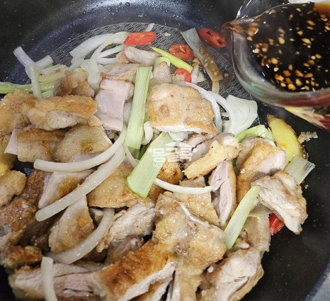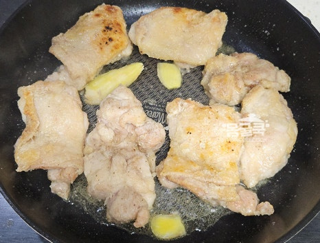 닭에서 나온 기름이 많다면 키친타월로 닦아내거나 팬을 기울여 살짝 따라내주세요.