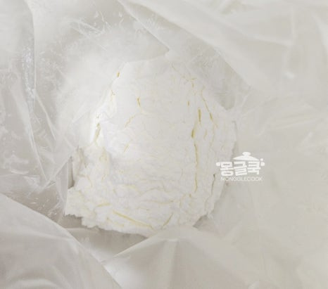 전분이 얇고 고르게 묻도록 털어내며 코팅해주는 것이 포인트!