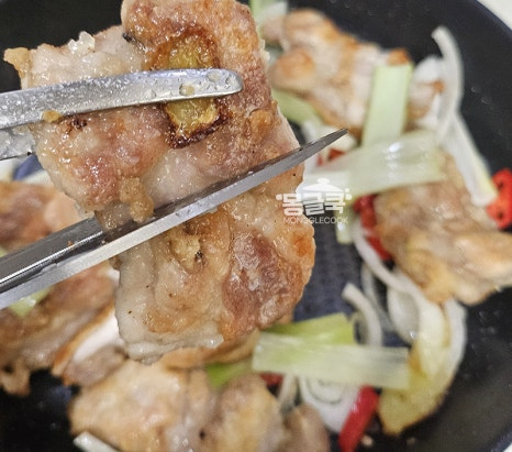 닭은 먹기 좋은 크기로 가위로 잘라 주세요.