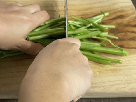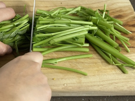 물기 뺀 공심채는 7~8cm 정도 길이로 썰어 주세요.