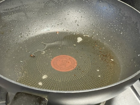 구운 삼겹살은 따로 빼두고 팬에 남은 삼겹살 기름을 2~3T 정도 남겨 두고 버려주세요.
