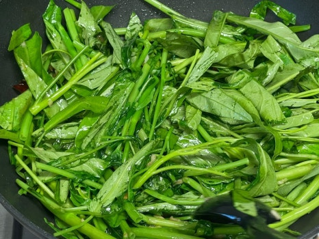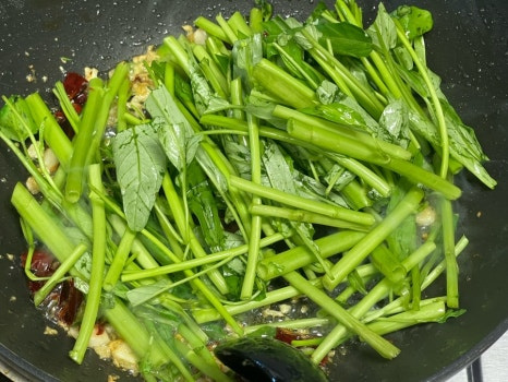 공심채는 볶는 시간이 길어지면 질겨질 수 있으니 센 불에서 빠르게 볶아 주는 게 중요한 포인트가 될 수 있어요.