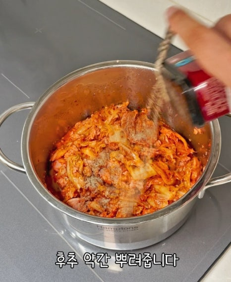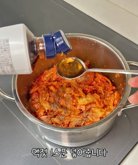 후추를 살짝 뿌려 향을 더하고, 멸치액젓 1스푼을 넣어 감칠맛을 더합니다.