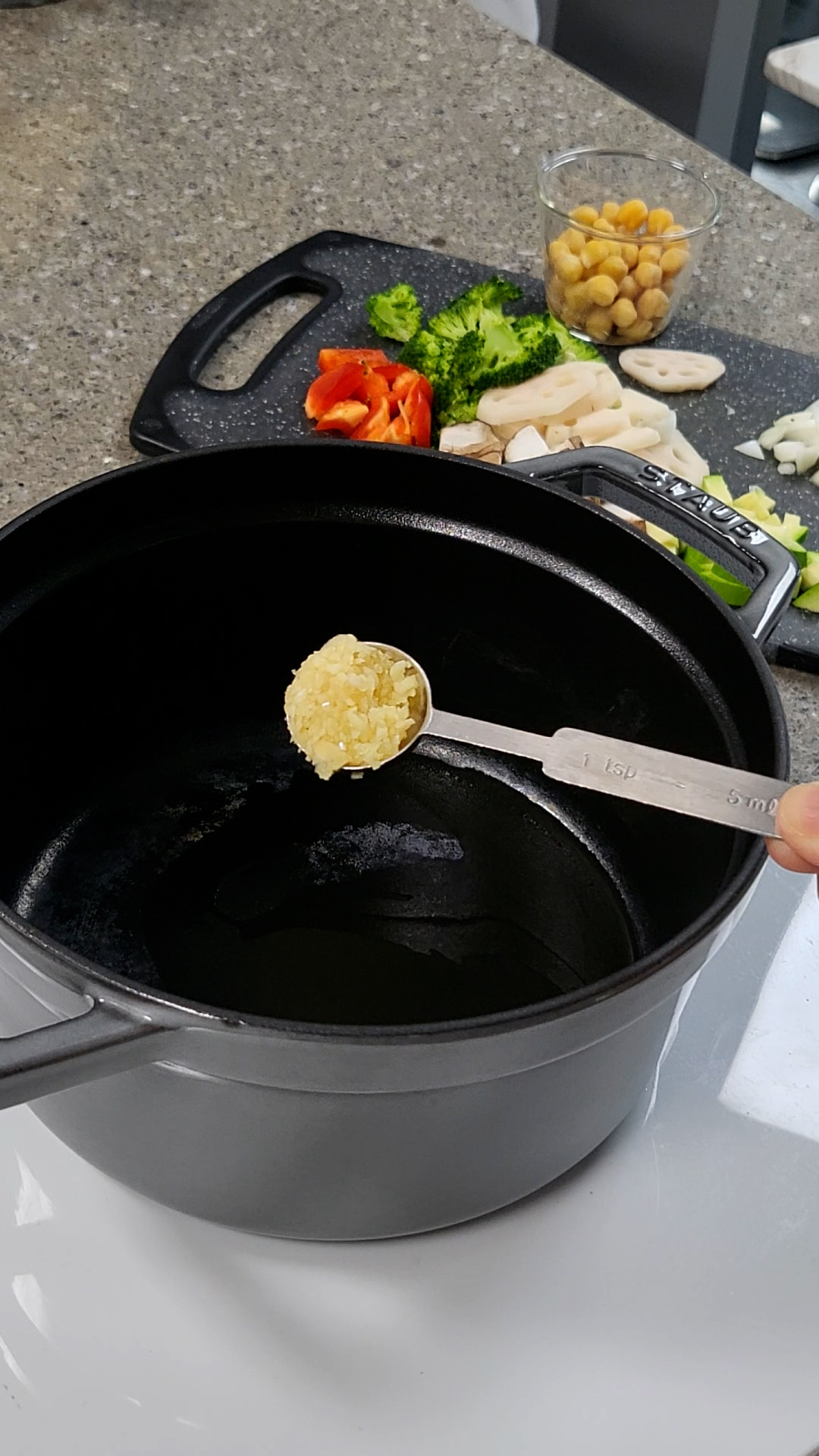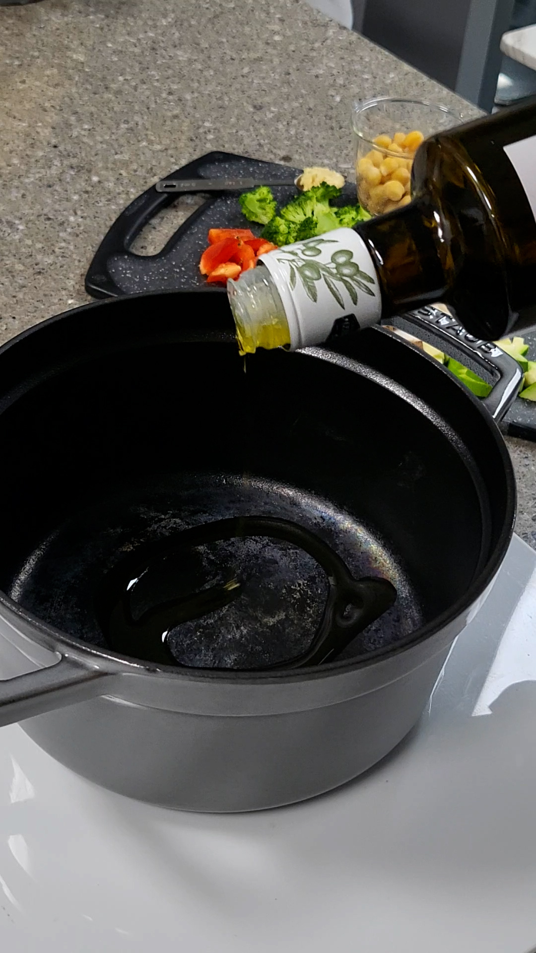 냄비나 웍을 준비하고 올리브오일을 두른 다름 다진 마늘, 양파, 당근을 넣고 먼저 볶기 시작한다.