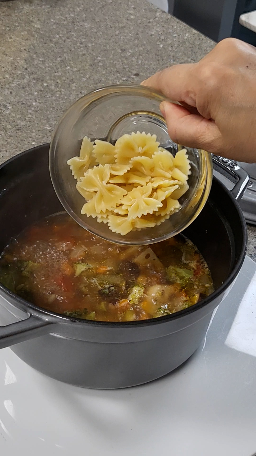 숏파스타는 야채를 볶는 동안 옆에서 1차로 삶은 다음 건져서 넣었다.