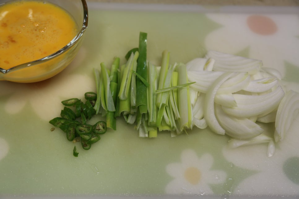 계란 3개, 대파 1대, 양파 1/2개, 청양고추 1개