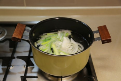 물 800ml, 코인육수 2개, 대파 1대, 양파 1/2개