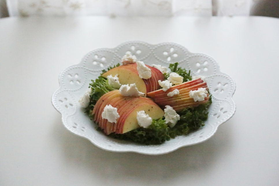 프릴아이스 3장, 사과 1개, 샐러드올리브오일드레싱