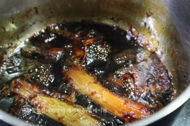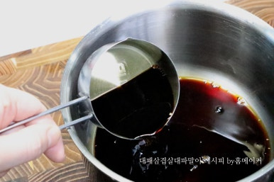 간장 1/2컵, 맛술 1/2컵, 갈색 설탕 5T, 다진 생강 1t