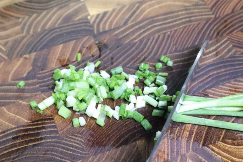 반죽 위에 올릴 재료로 쪽파를 다져주었어요.
