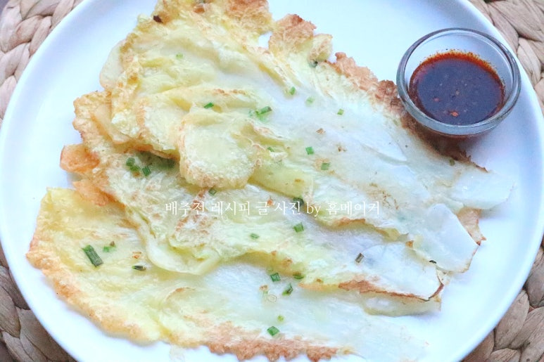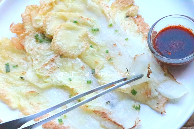 배추 한 쪽 면을 노릇하게 부쳤다면 뒤집어서 반대 쪽면도 노릇하게 부쳐주세요~