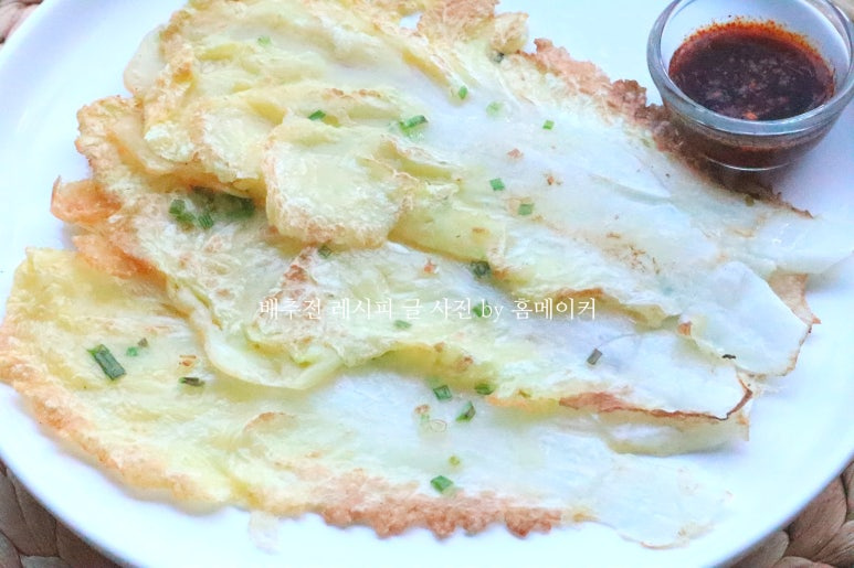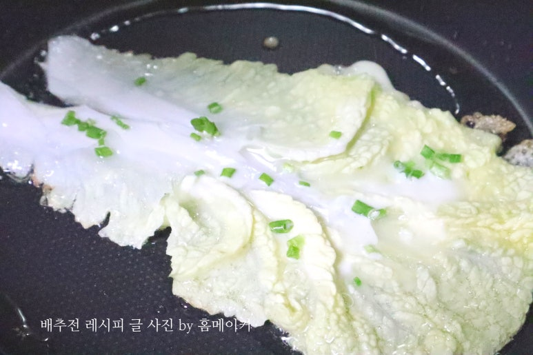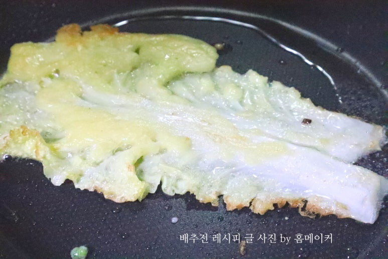 이제 팬에 배추전을 부쳐볼게요~