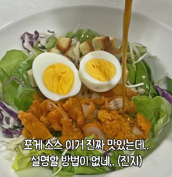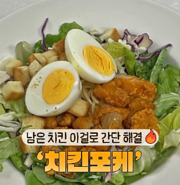 샐러드 한 봉지랑 먹다 남은 치킨 몇 조각만 있어도 한 끼가 이렇게 풍성해질 수 있다는 거... 여러분도 아시나요?