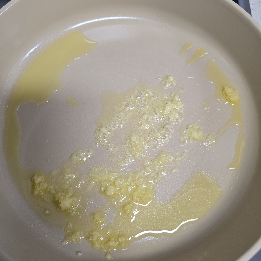 달궈진 팬에 들기름 2T, 다진 마늘 0.5T