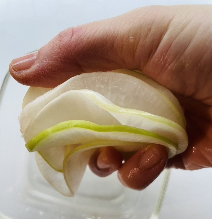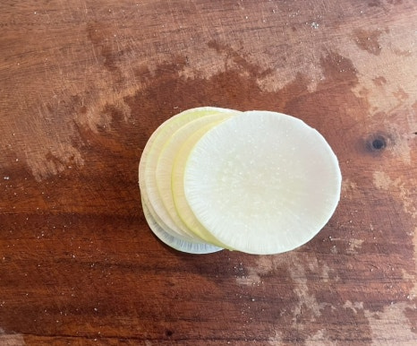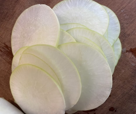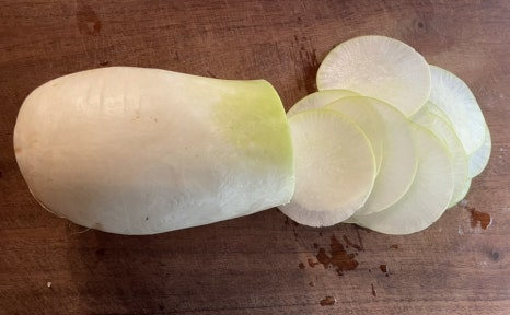 무를 써는 두께에 따라 식감도 약간 달라질 수 있어요.