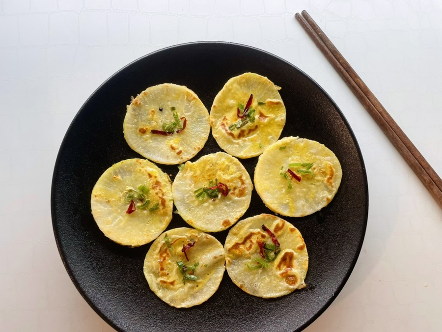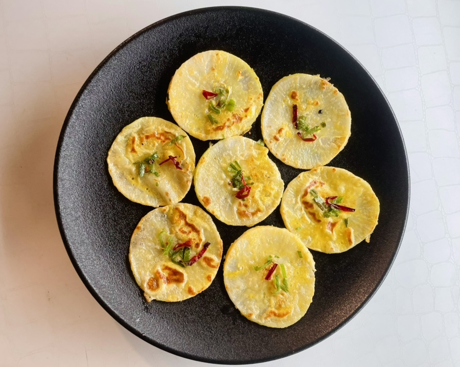 무전을 만드는 방법은 써는 방법에 따라 무채전, 동그랗게 썬 무전으로 만들 수 있죠.