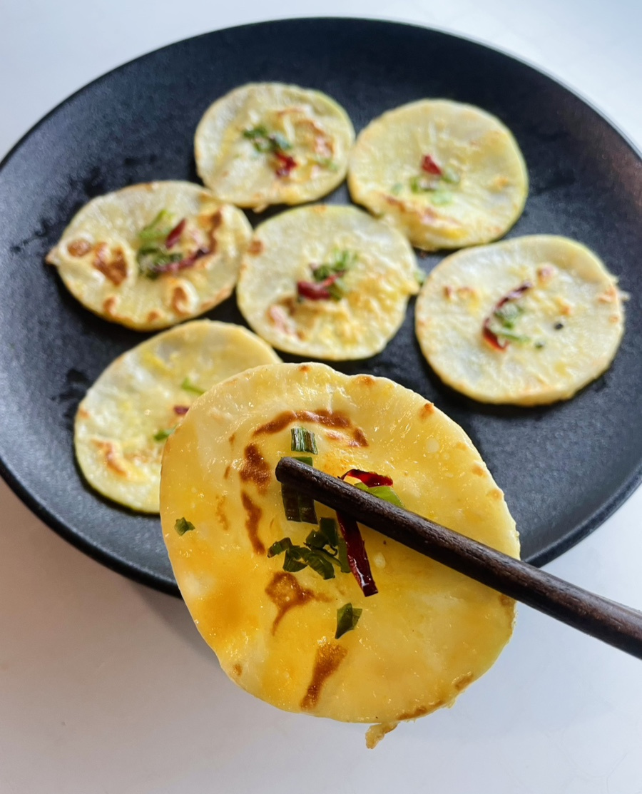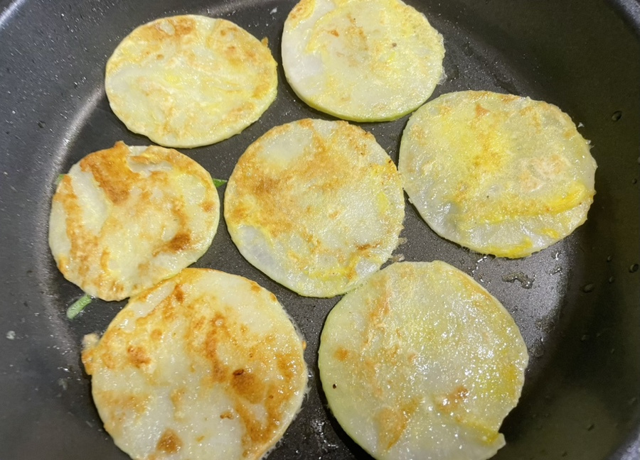 무전을 얇게 부치니 조리시간도 짧고 무가 잘 익어서 감자전처럼 부드러우면서 쫄깃하면서 살짝 아삭한 식감도 느껴지고 너무 맛있어서 가볍게 먹어 보려고 조금만 부쳤는데